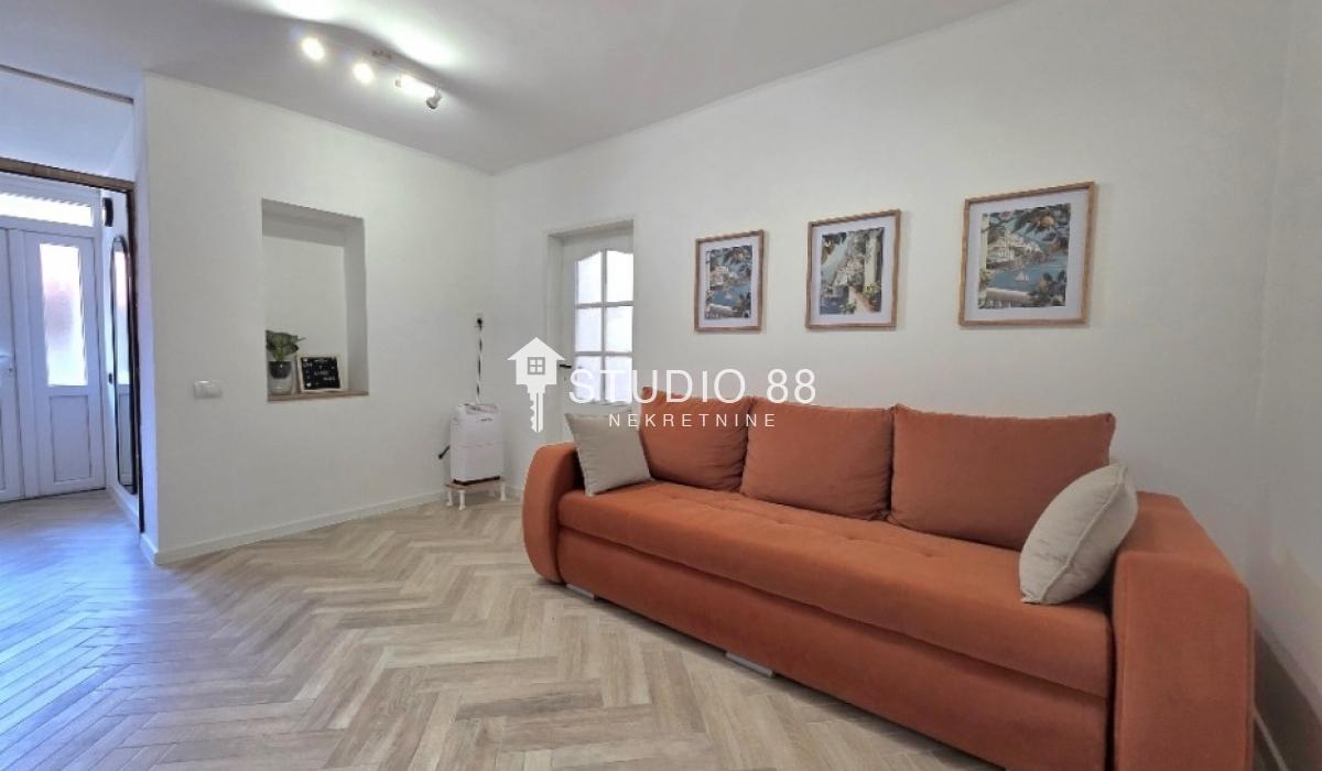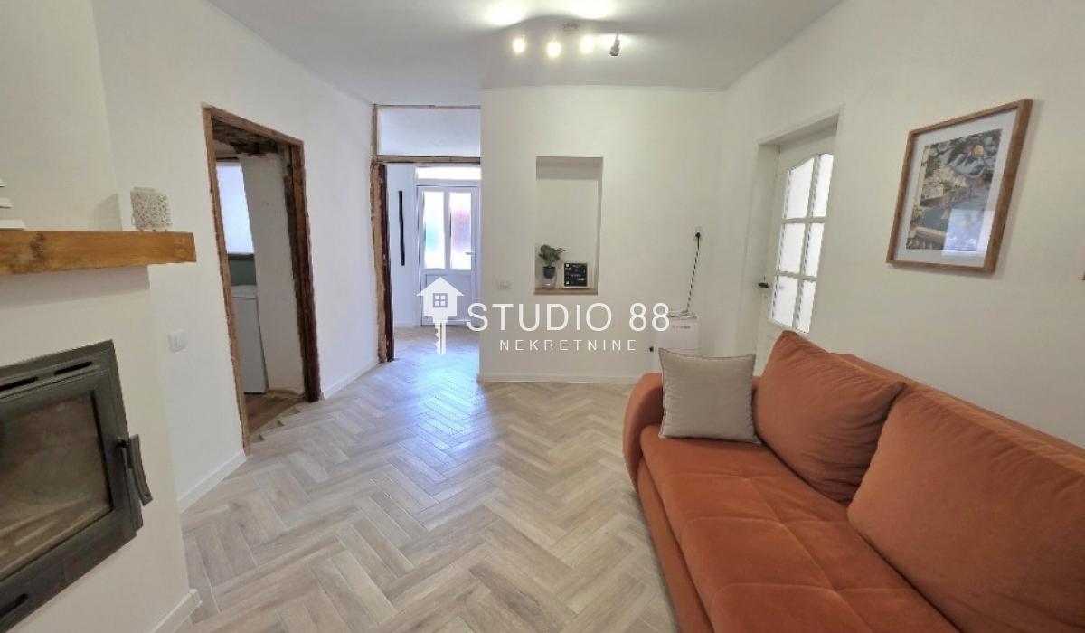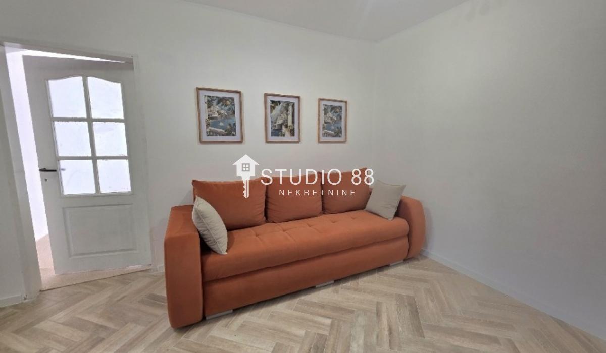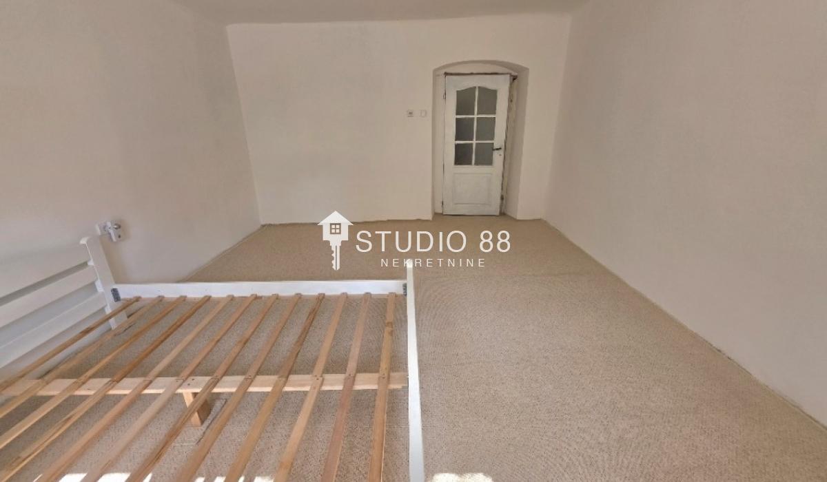 Dvorišni stan u širem centru grada, površine 64m2. Sastoji se od dve sobe, kihinje sa trpezarijom, kupatila i odvojenog toaleta. Po podovima keramika i etison, PVC stolarija, grejanje na struju ili čvrsto gorivo.
