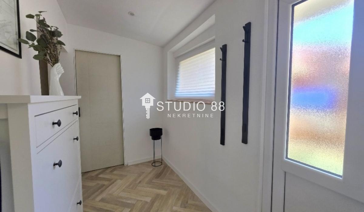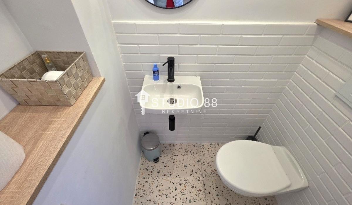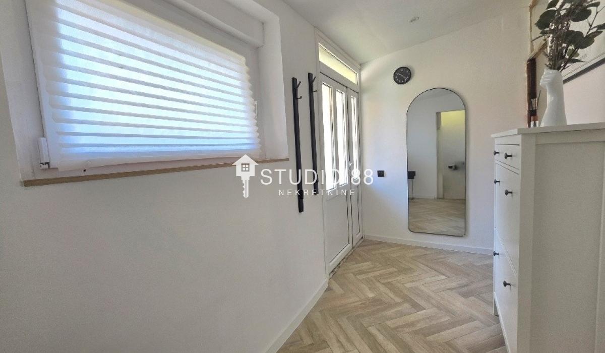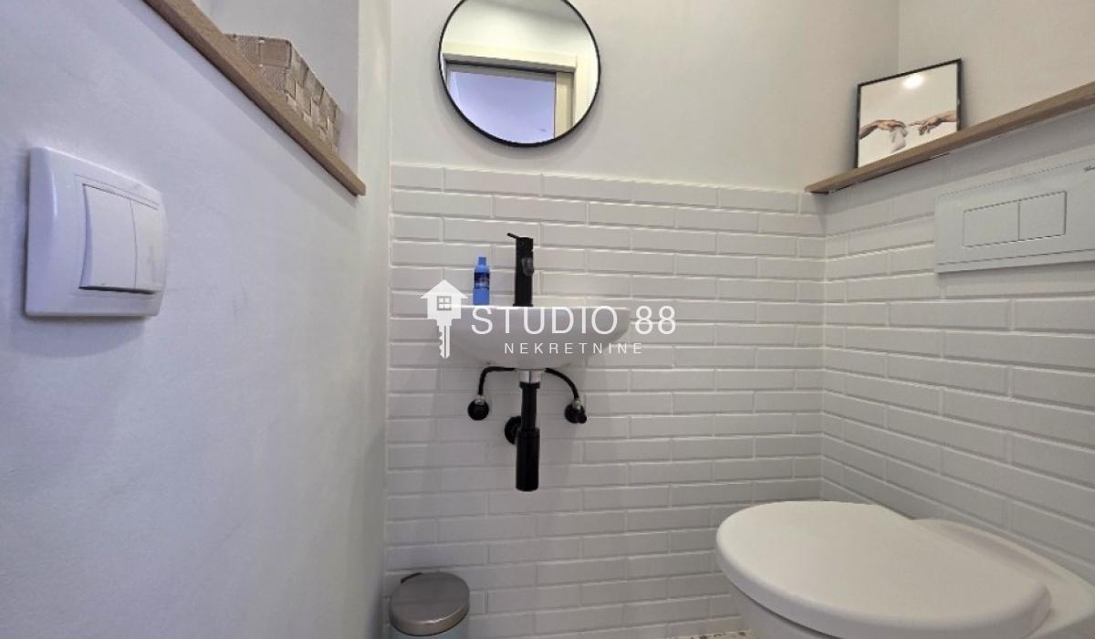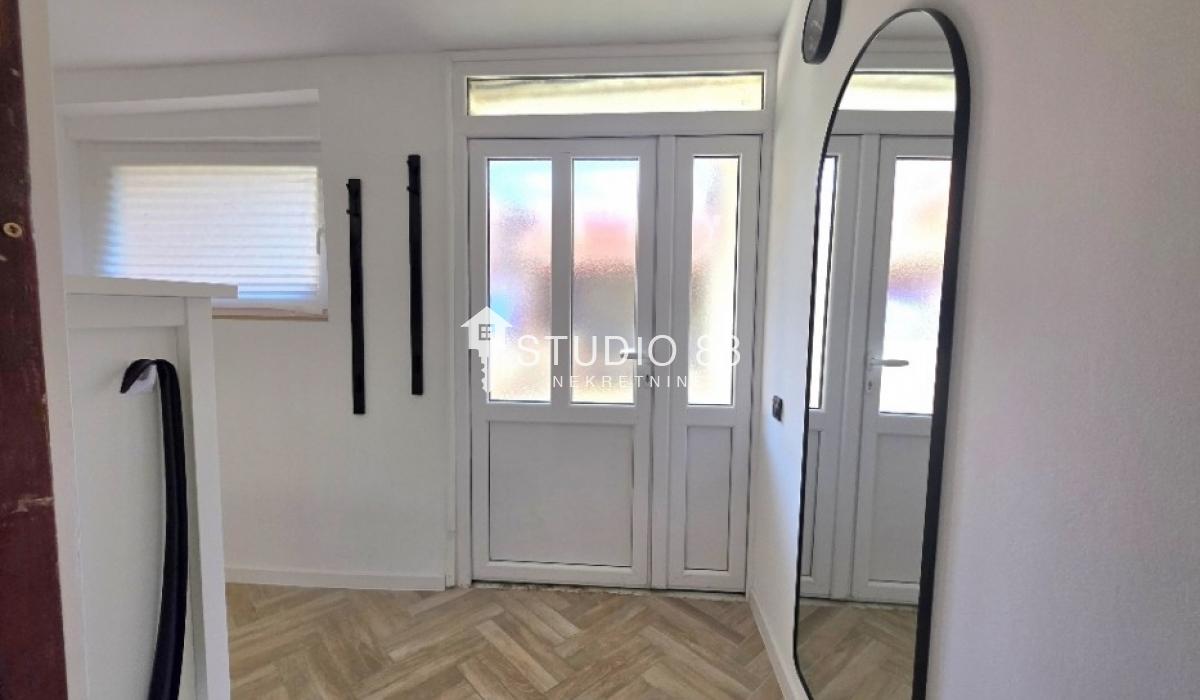 Dvorišni stan u širem centru grada, površine 64m2. Sastoji se od dve sobe, kihinje sa trpezarijom, kupatila i odvojenog toaleta. Po podovima keramika i etison, PVC stolarija, grejanje na struju ili čvrsto gorivo.