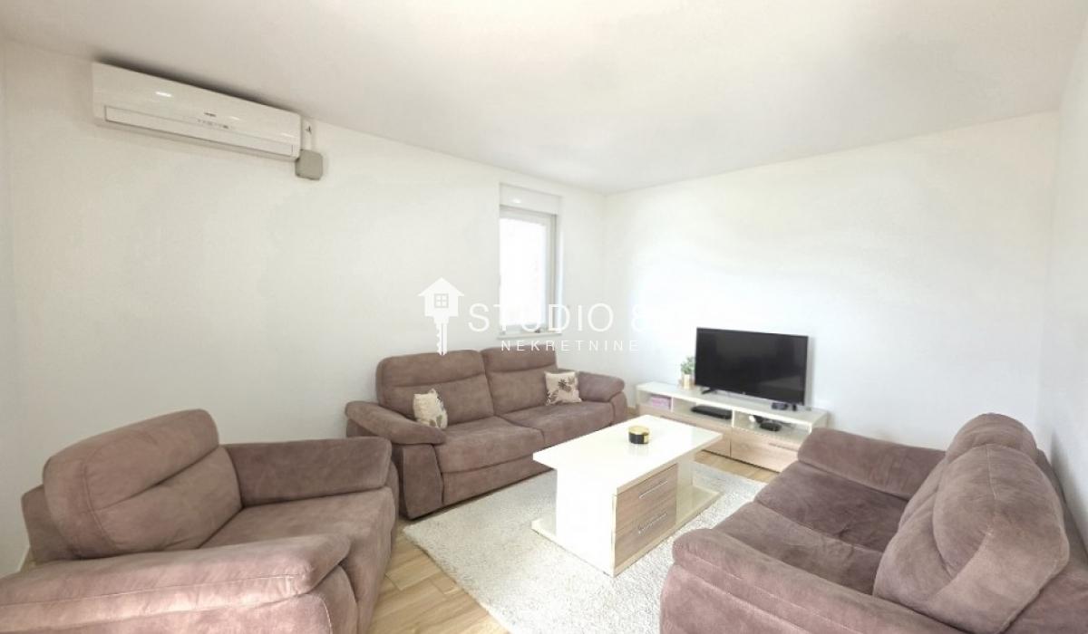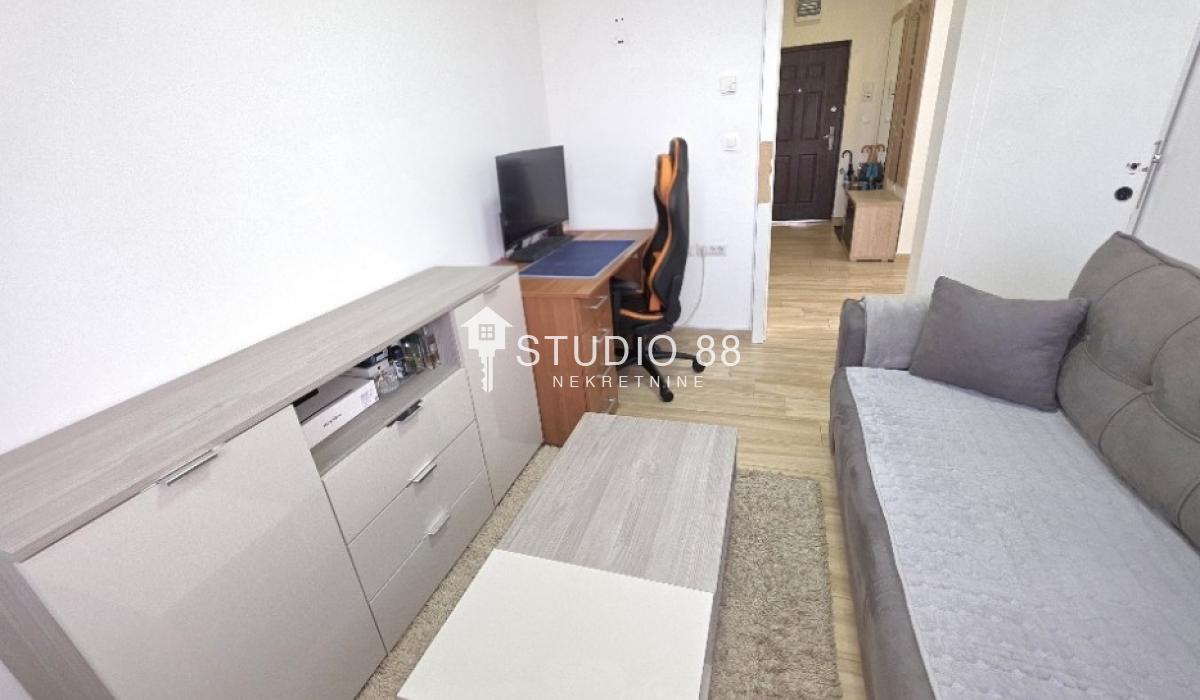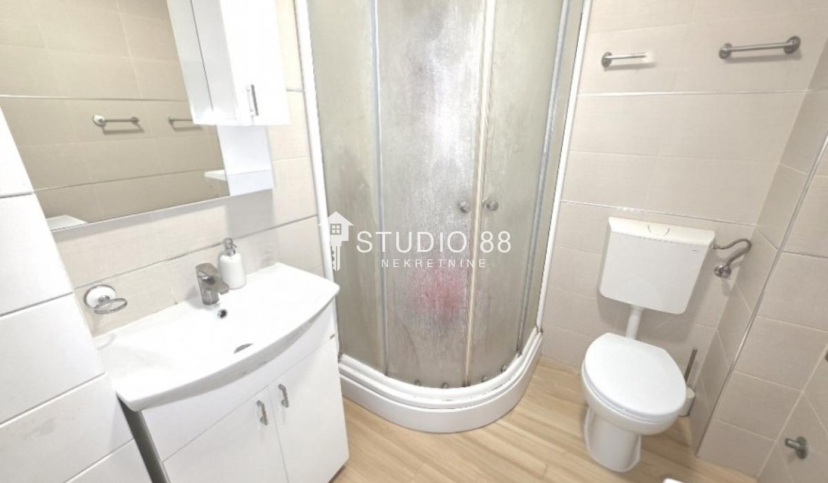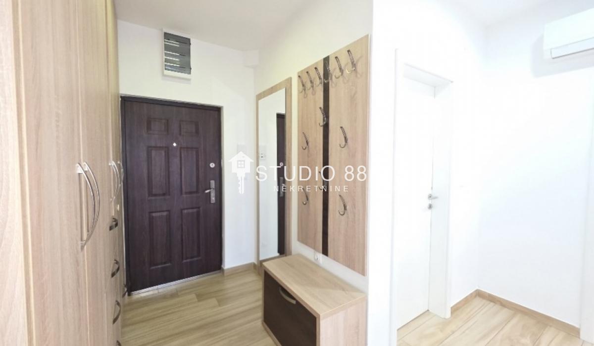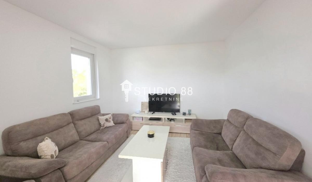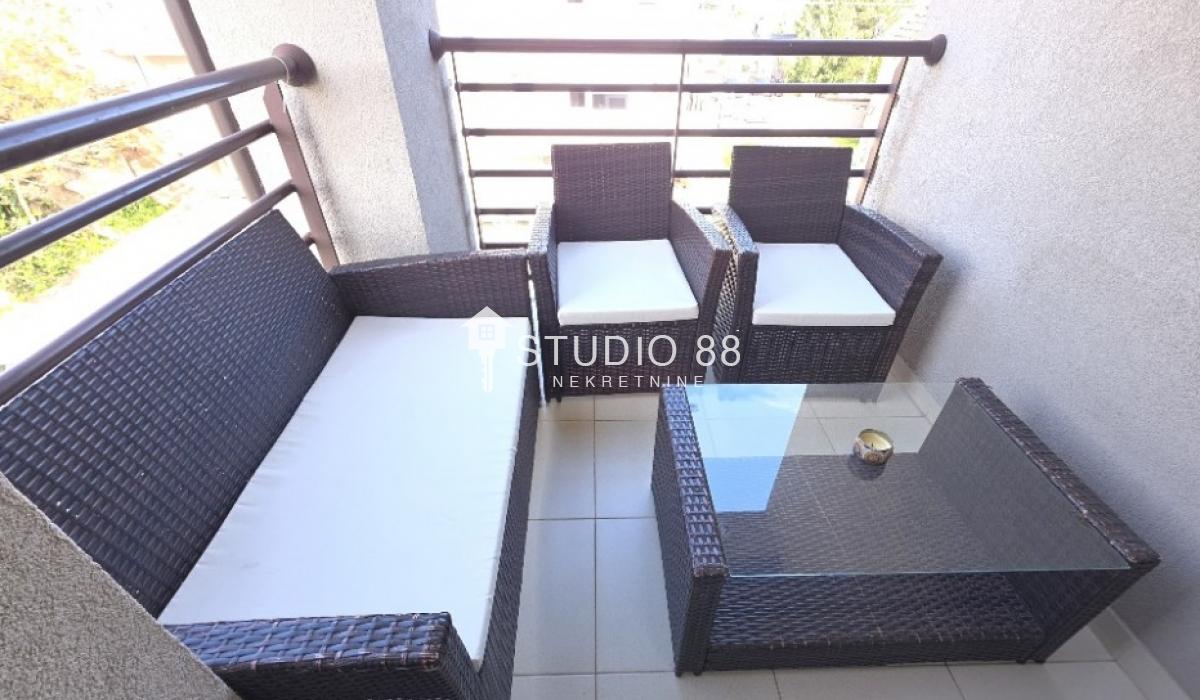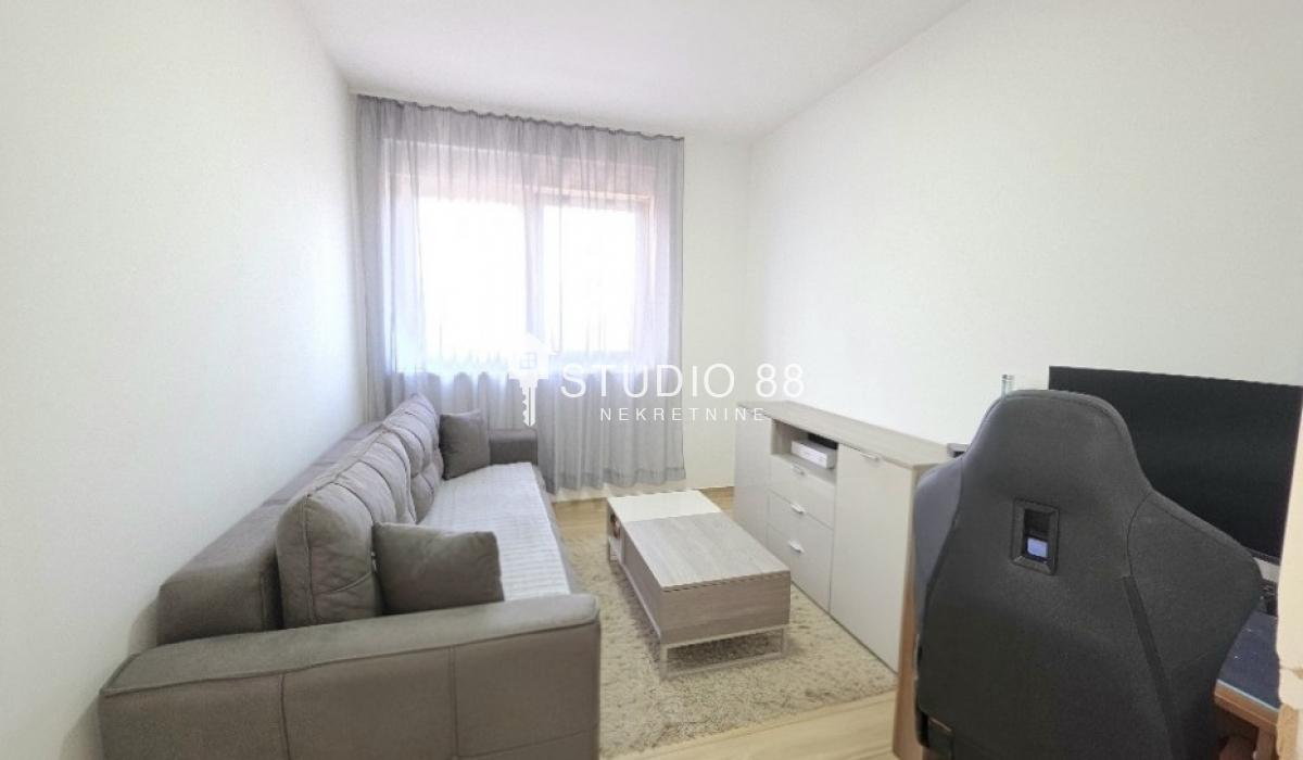 Četvorosban stan u širem centru grada, površine 103m2, na drugom od tri sprata novije stambene zgade, trostrano orijentisan. Stan se sastoji od hodnika, trpezarije sa kuhinjom, dnevnog boravka koji ima izlaz na jednu terasu, tri spavaće sobe od kojih jedna ima izlaz na drugu terasu, kupatila i toaleta. Po podovima granitna keramika, grejanje podno po sistemu toplotnih pumpi gde svaka soba ima mogućnost individualnog podešavanja temperature, hlađenje fan coil sistem sa dve jedinice, PVC stolarija, sigurnosna ulazna vrata, demit fasada, inetrfon.